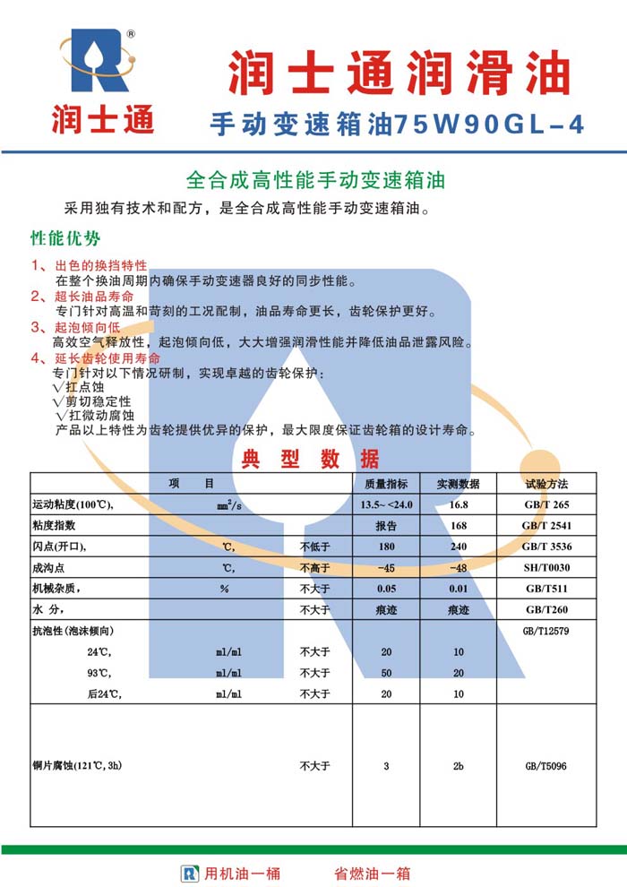 咨詢:潤(rùn)士通手動(dòng)變速箱油75W90GL-4